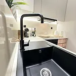 L’alloggio include un angolo cottura attrezzato con una lavastoviglie e un forno.